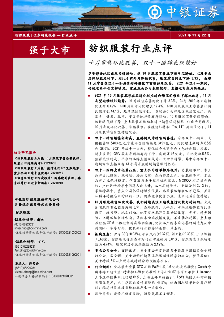 中银证券:纺织服装行业点评:十月零售环比改善,双十一国牌表现较好.pdf