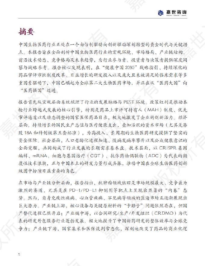 1、打开文档需要使用基本的办公软件,如Word、Office、WPS、Pdf、Cad、Rar、Zip等。 2、如遇下载失败、解压失败、文档缺失等问题,请通过【反馈】按钮提交。嘉世咨询:2025年中国生物医药行业现状报告.pdf