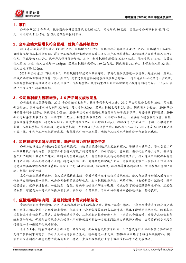 浙商证券:中联重科2019年报点评:盈利改善靠管理,需求强化靠刺激.pdf