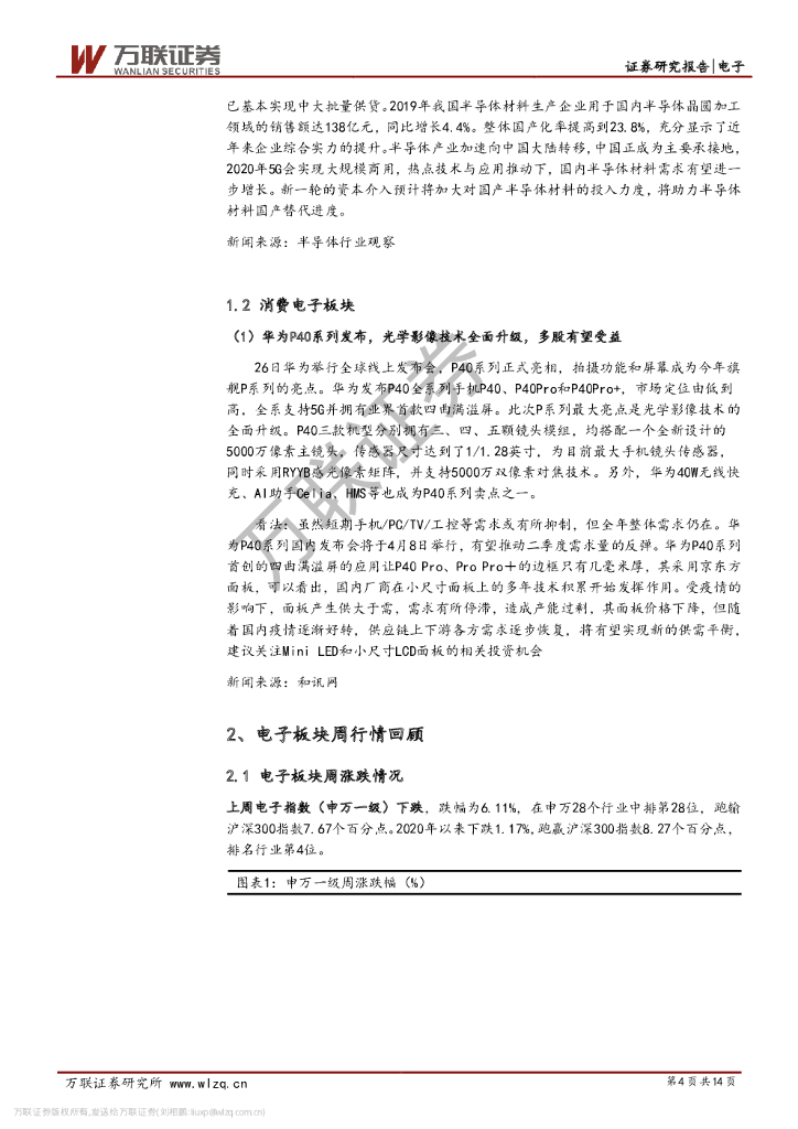 万联证券:电子行业周观点:华为P40系列发布,光学影像技术全面升级.pdf