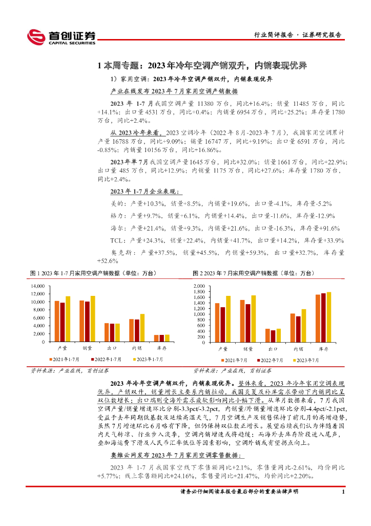 首创证券:家用电器行业周报:2023年冷年空调产销双升,内销表现优异.pdf