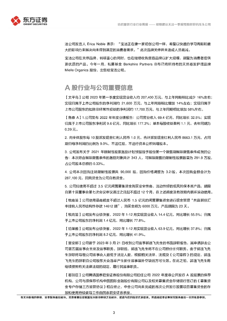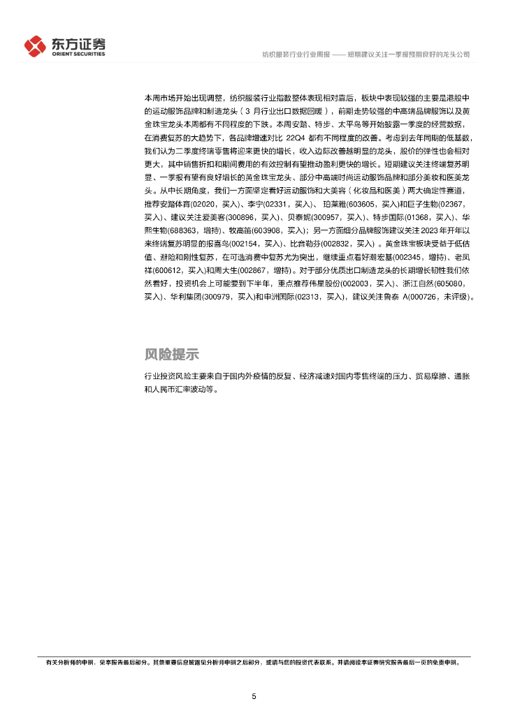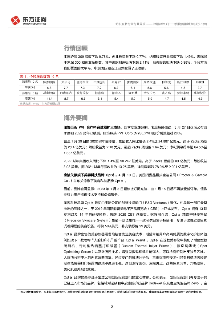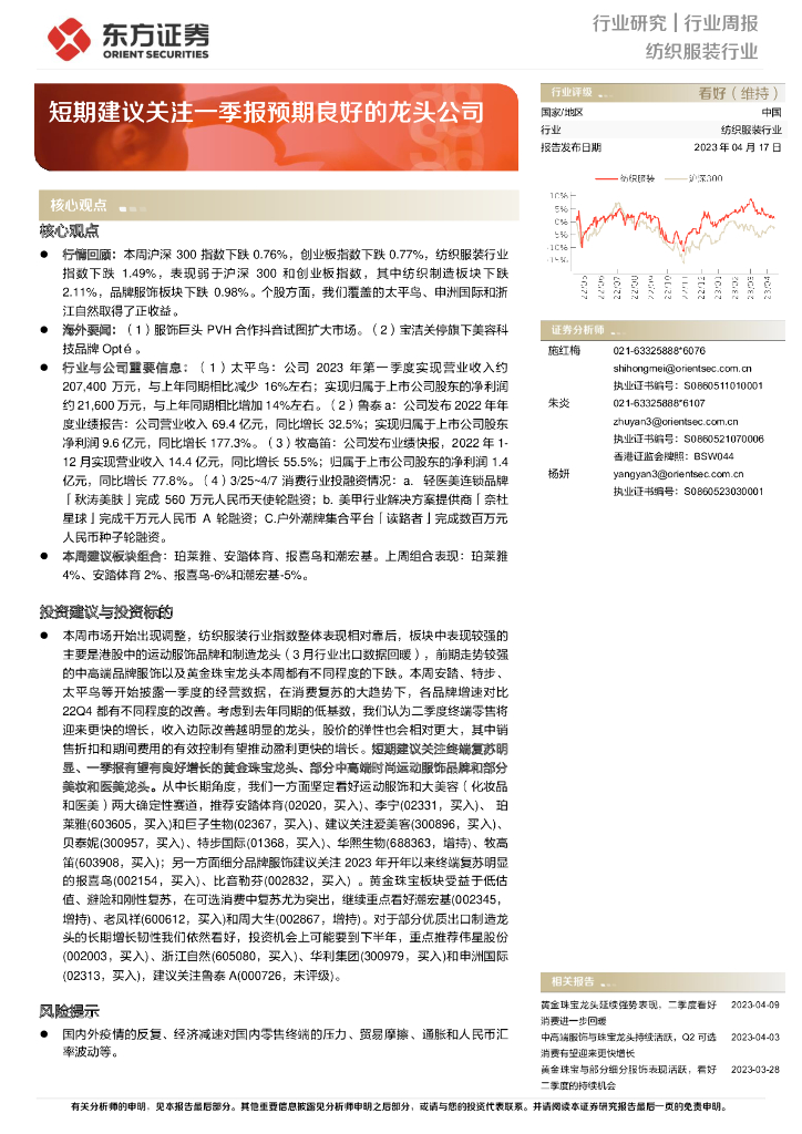 东方证券:纺织服装行业行业周报:短期建议关注一季报预期良好的龙头公司.pdf