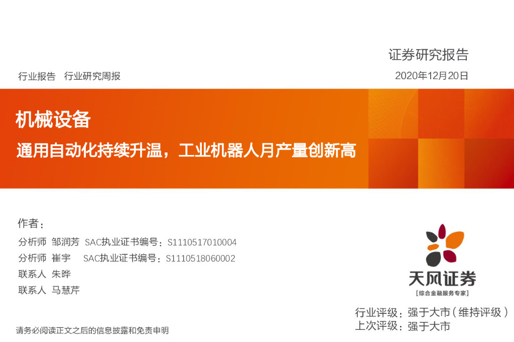 天风证券:机械设备行业研究周报:通用自动化持续升温,工业机器人月产量创新高.pdf