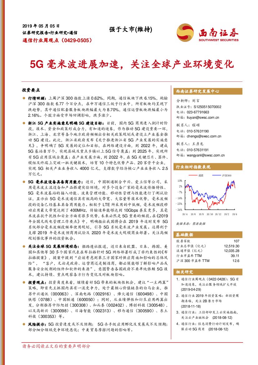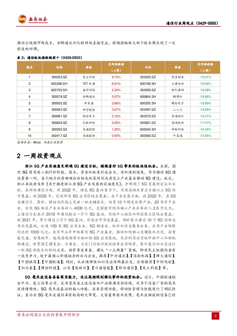 西南证券:通信行业周观点:5G毫米波进展加速,关注全球产业环境变化.pdf