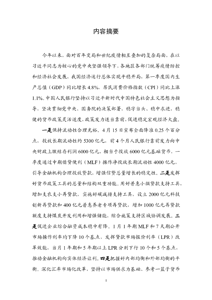 中国人民银行:2022年第一季度中国货币政策执行报告.pdf