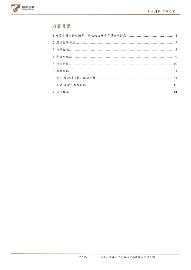 德邦证券:家用电器23W20周观点:4月空调内销超预期,家电板块旺季有望迎来拐点.pdf