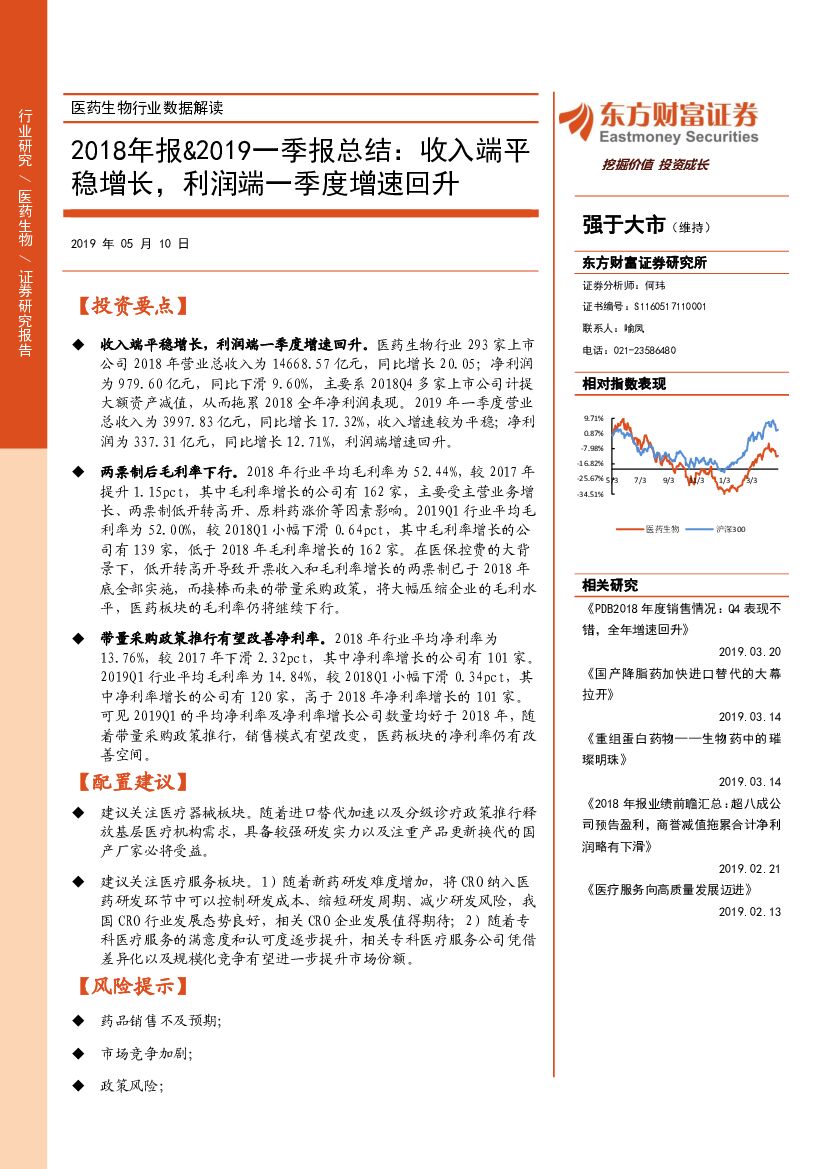 东方财富证券:医药生物行业数据解读:2018年报&2019一季报总结:收入端平稳增长,利润端一季度增速回升.pdf