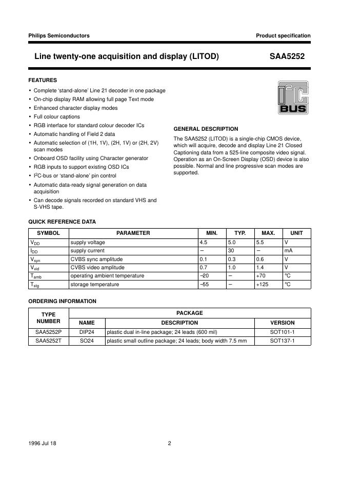 philips SAA5252 Line twenty-one acquisition and display (LITOD) 数据手册.pdf