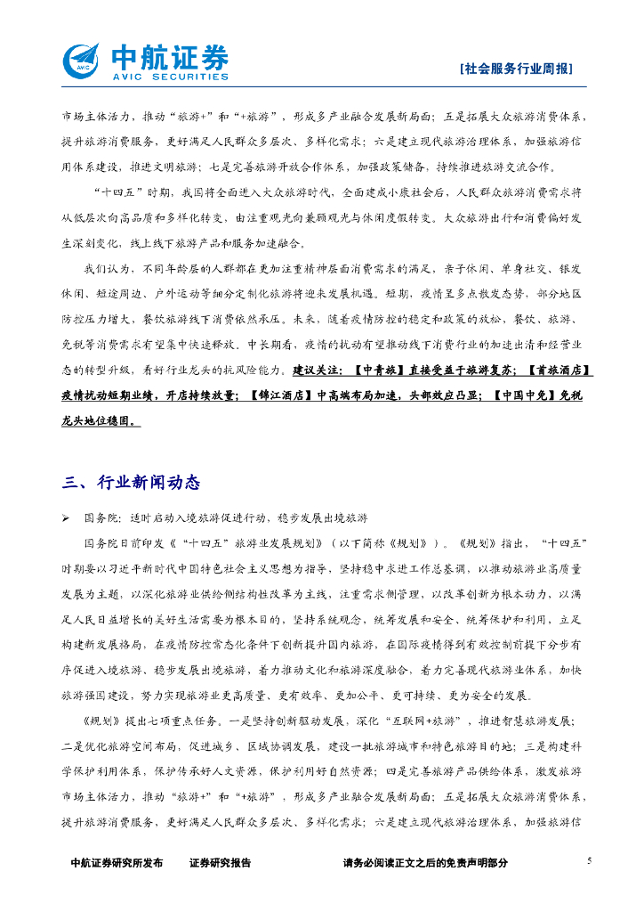 中航证券:社会服务行业周报:旅游业“十四五”规划出台,看好出行复苏行情.pdf
