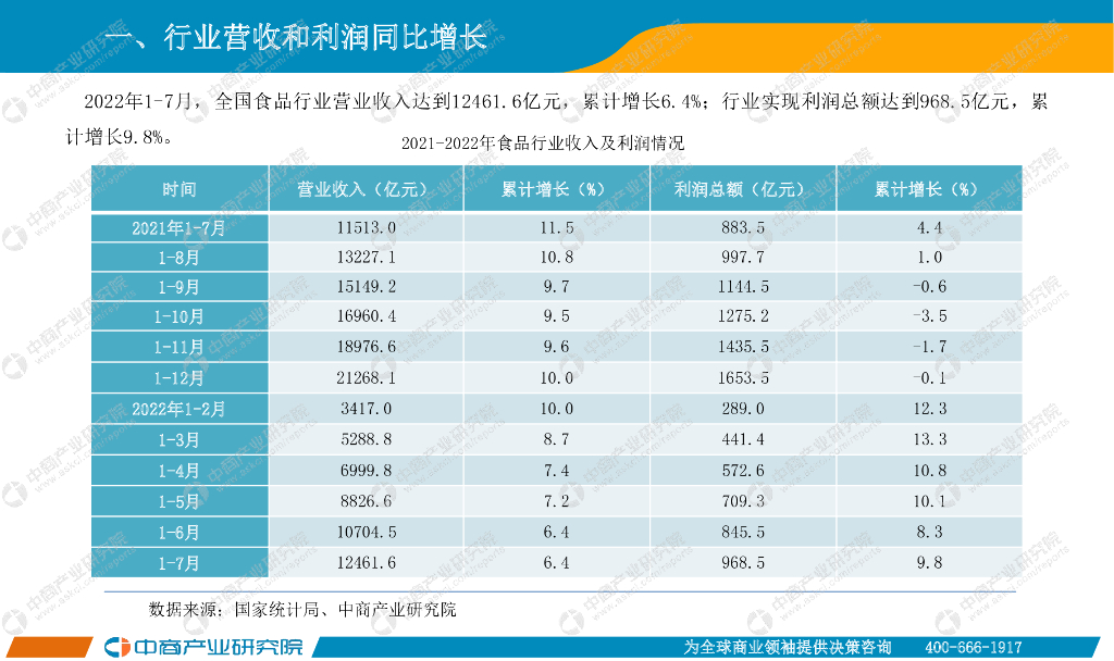 中商产业研究院:中国食品行业经济运行月度报告(2022年1-7月).pdf