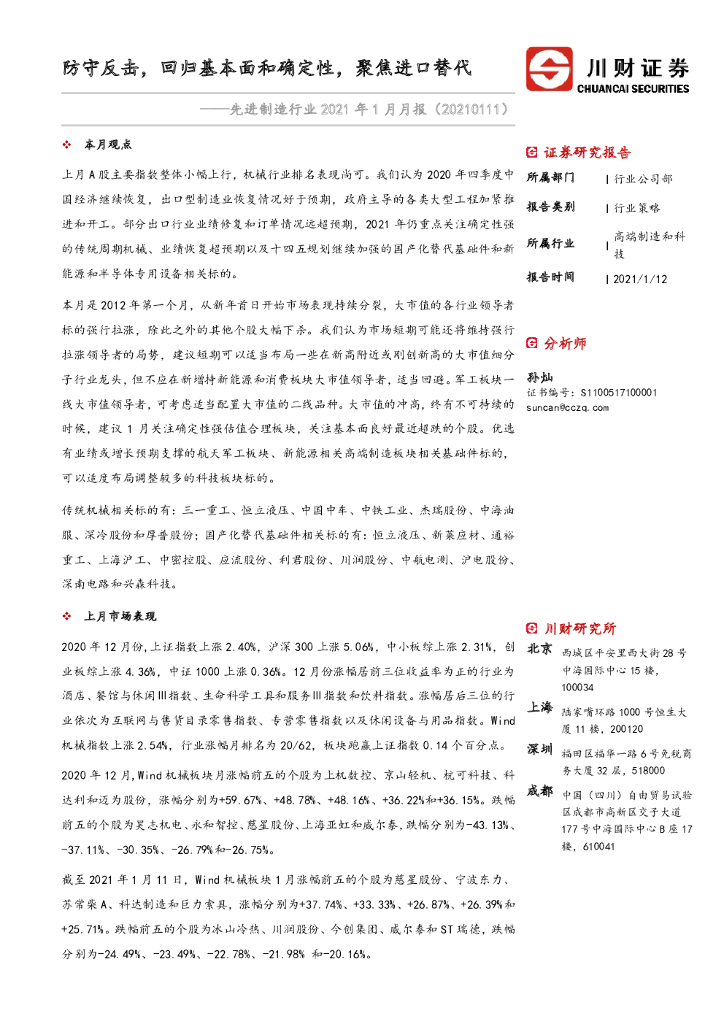 川财证券:先进制造行业2021年1月月报:防守反击,回归基本面和确定性,聚焦进口替代.pdf