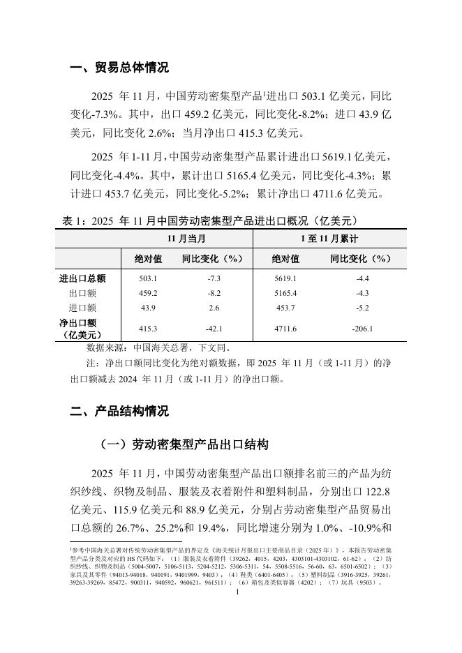 对外经济贸易大学:中国劳动密集型产品贸易月度监测报告(2025年1-11月).pdf