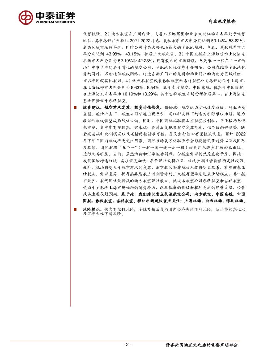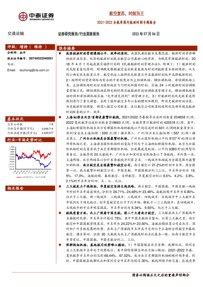 中泰证券:交通运输2021-2022全航季国内航班时刻专题报告:航空复苏,时刻为王.pdf