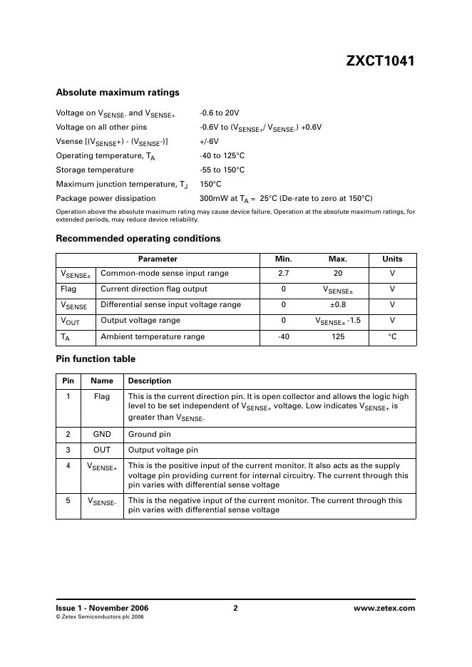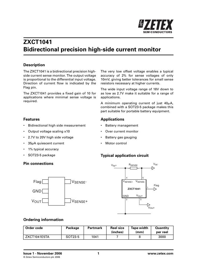 ZETEX ZXCT1041 Bidirectional precision high-side current monitor 数据手册.pdf