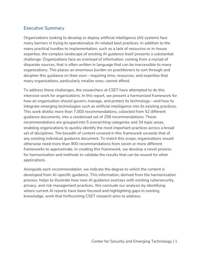 CSET:2025年协调人工智能指导:将自愿标准和最佳实践distill成一个统一的框架报告(英文版).pdf
