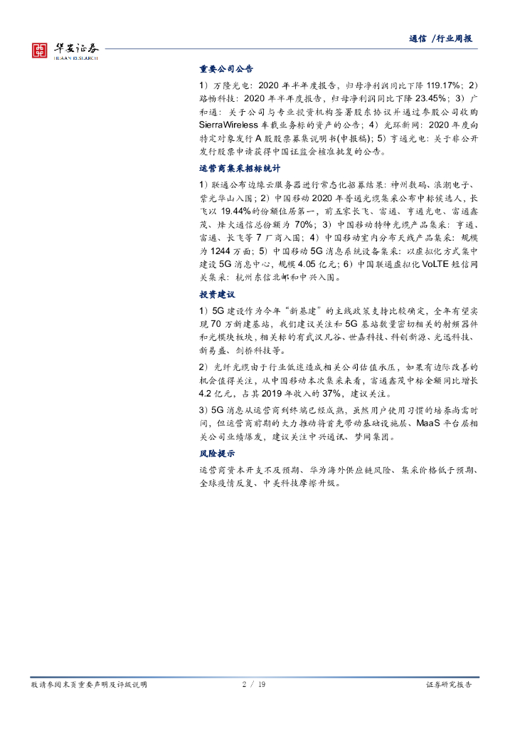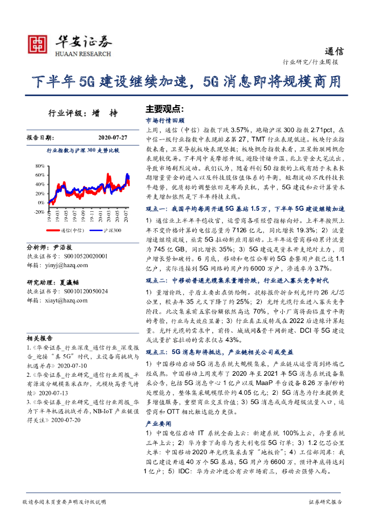 华安证券:通信行业周报:下半年5G建设继续加速,5G消息即将规模商用.pdf