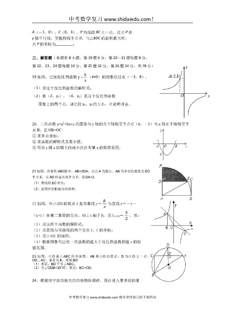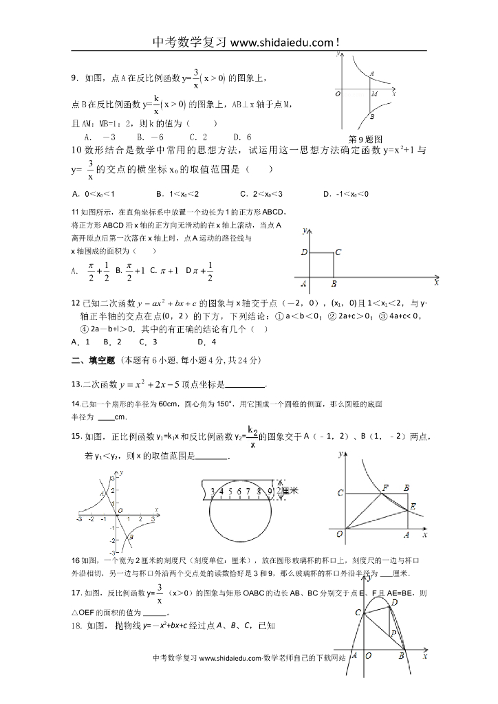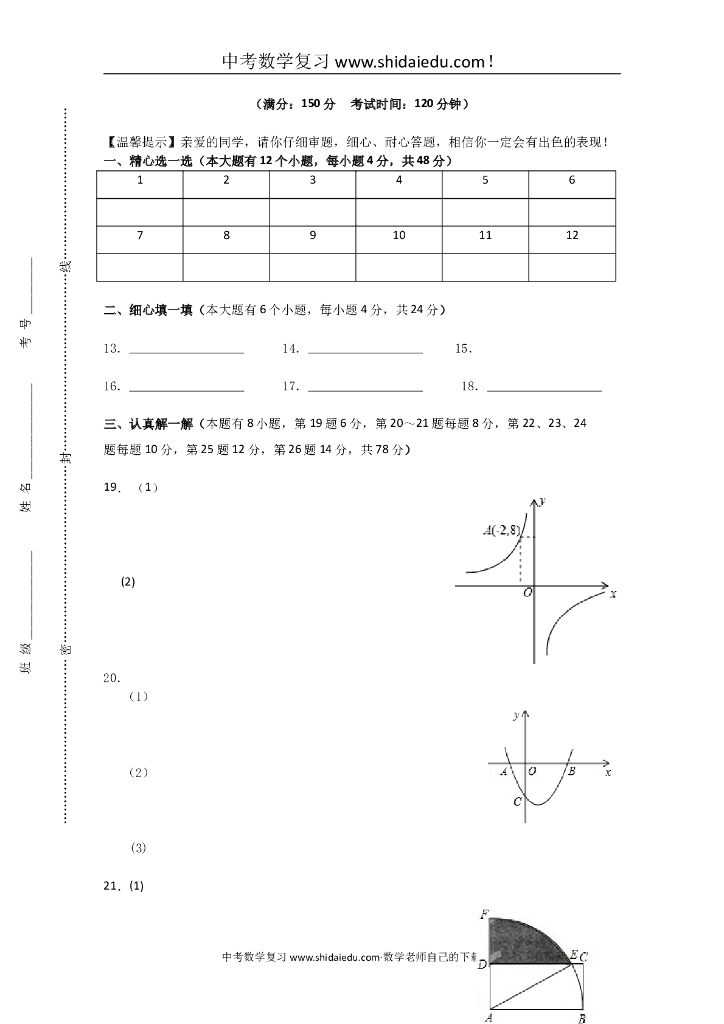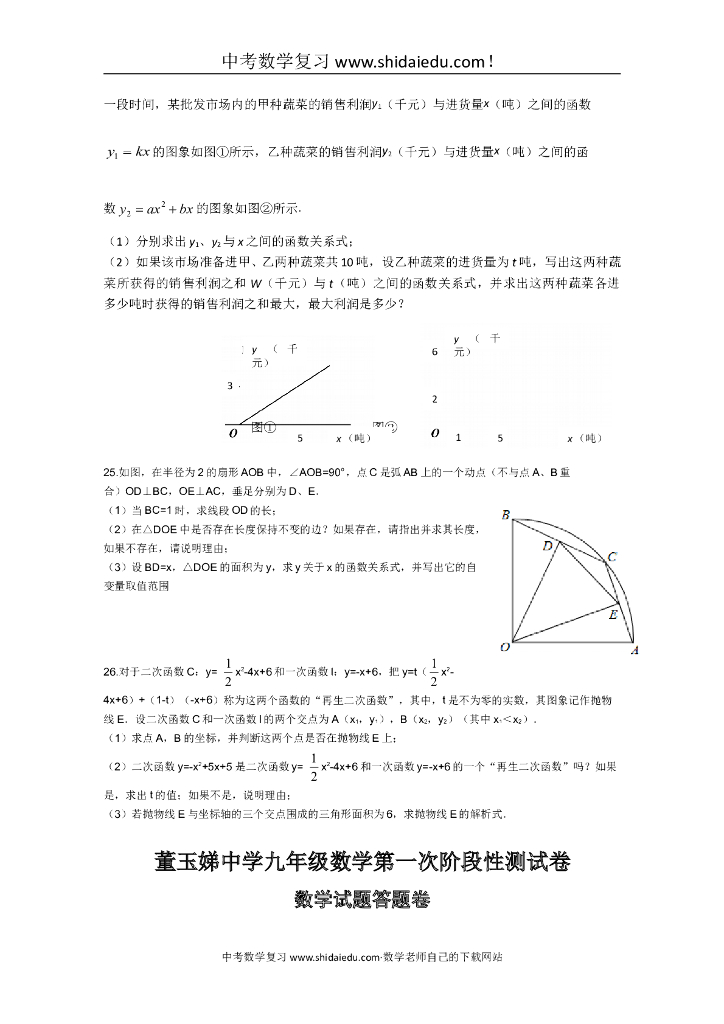 董玉娣中学九年级数学中考第一次阶段性测试卷附答题纸参考答案.doc