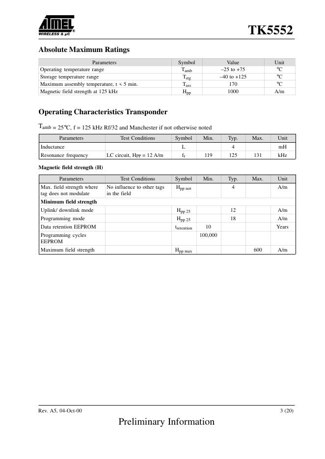 ATMEL TK5552 数据手册.pdf