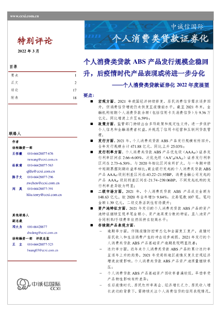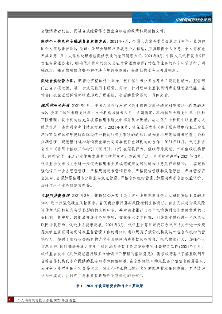 中诚信国际:个人消费类贷款证券化2022年度展望:个人消费类贷款ABS产品发行规模企稳回升,后疫情时代产品表现或将进一步分化.pdf