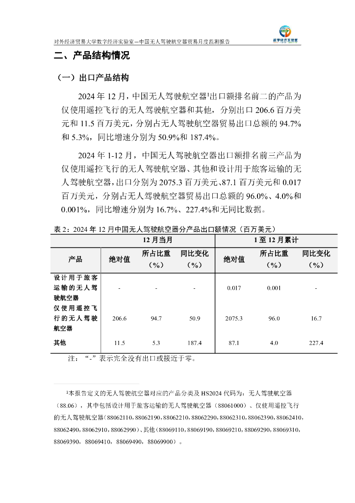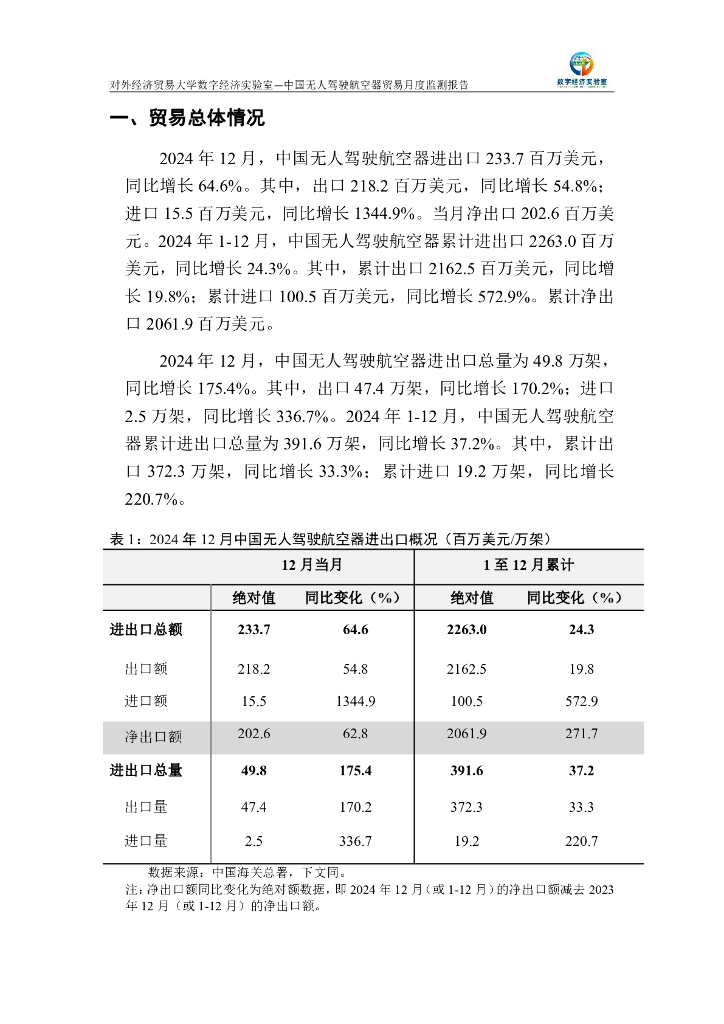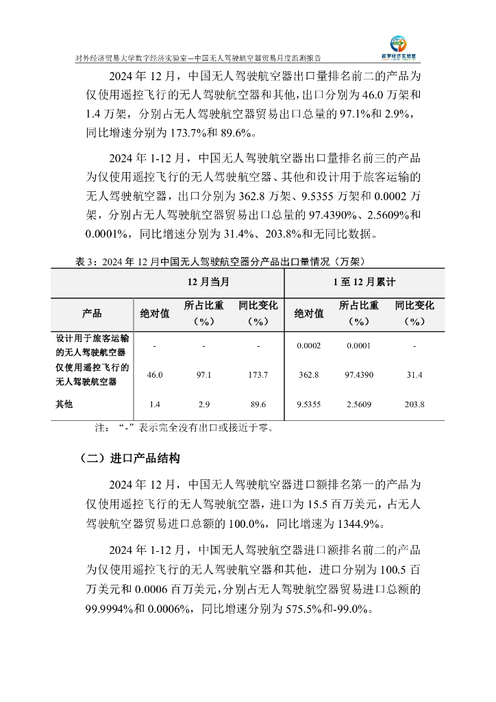 对外经济贸易大学:中国无人驾驶航空器贸易月度监测报告(2024年1-12月).pdf