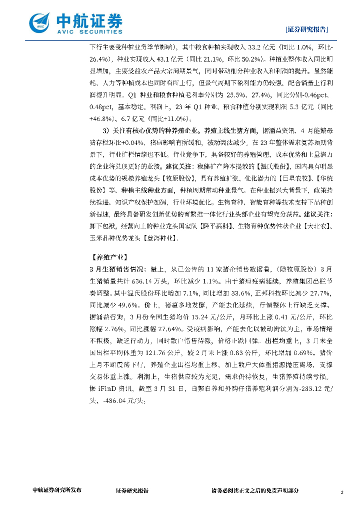 中航证券:农业周观点:Q1养殖同比改善,种植种业景气.pdf