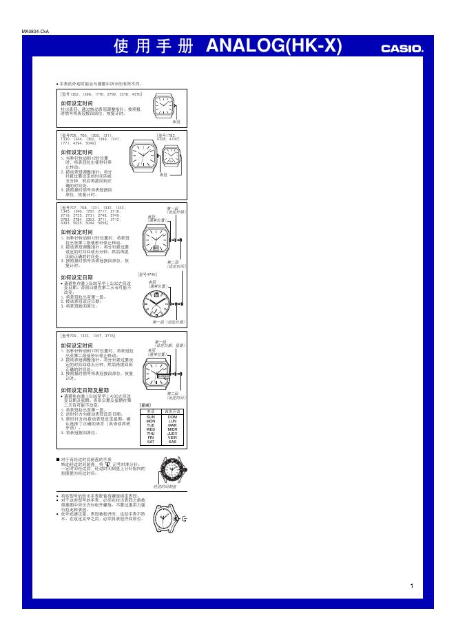 卡西欧 ANALOG(HK-X)手表 使用手册.pdf