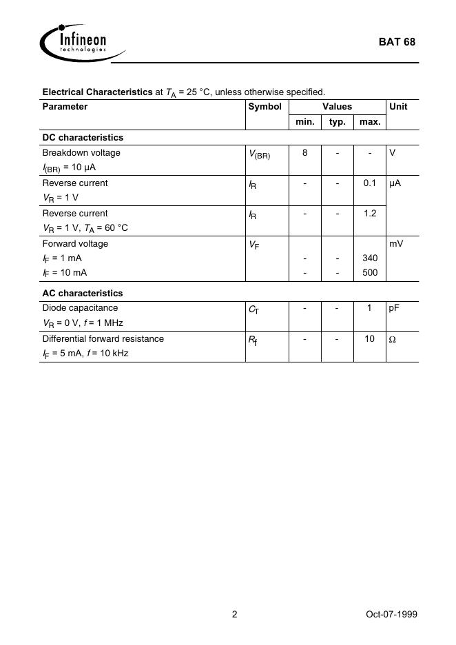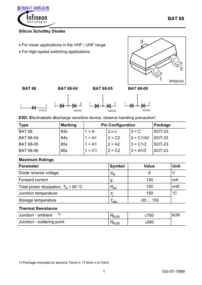 Infineon BAT 68 数据手册.pdf