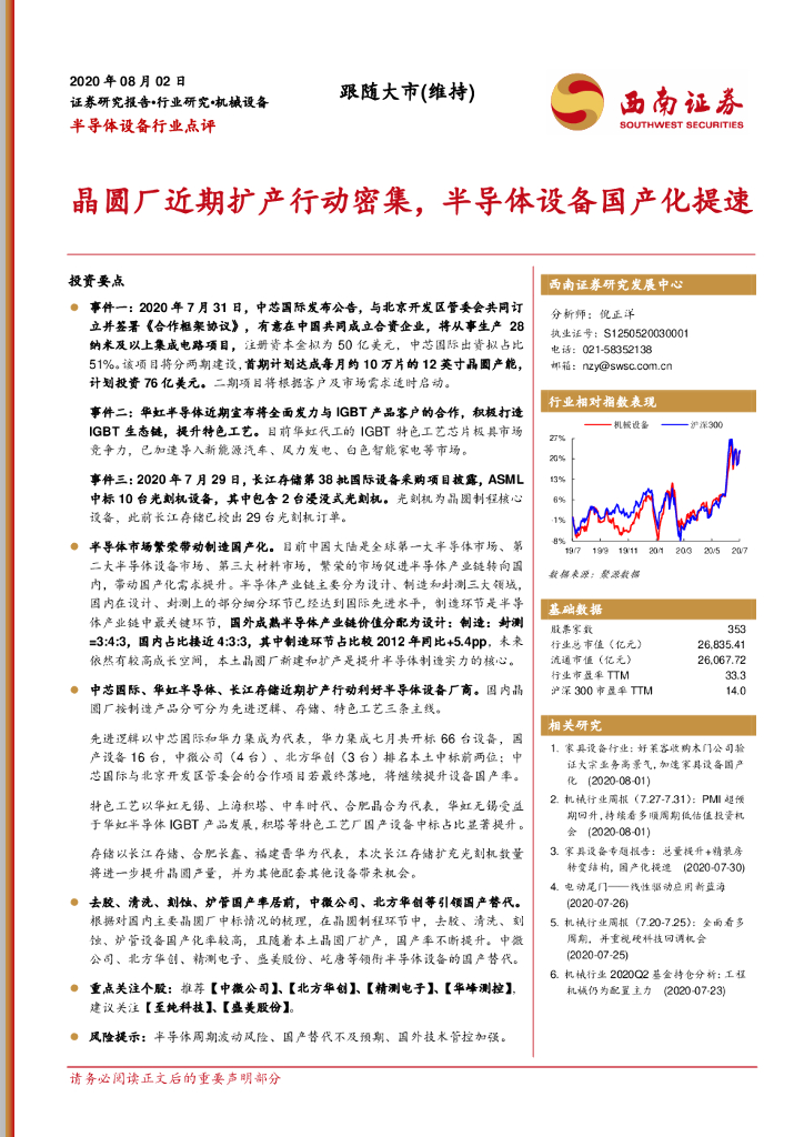 西南证券:半导体设备行业点评:晶圆厂近期扩产行动密集,半导体设备国产化提速.pdf
