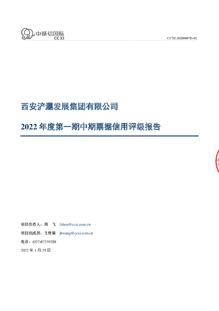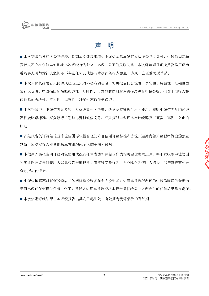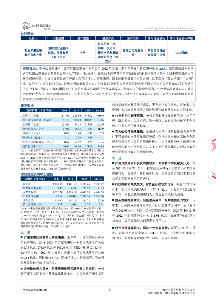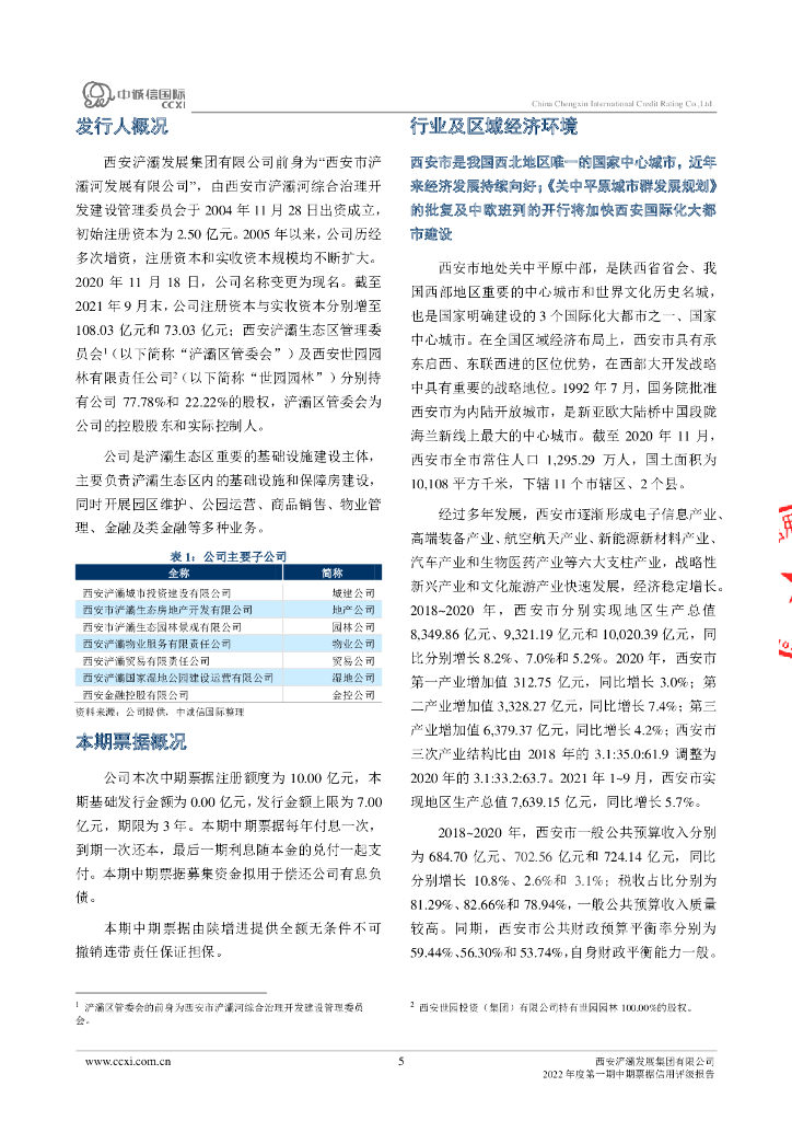 中诚信:西安浐灞发展集团有限公司2022年度第一期中期票据信用评级报告.pdf