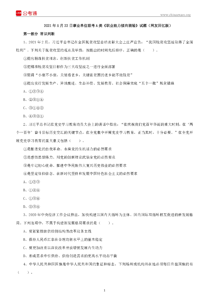 2021年5月22日事业单位联考A类《职测》试题.pdf