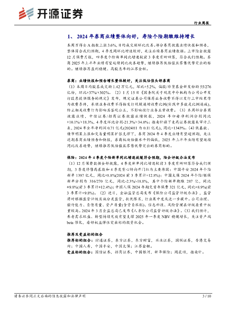 开源证券:非银金融行业周报:2024年券商业绩整体向好,寿险个险期缴维持增长.pdf