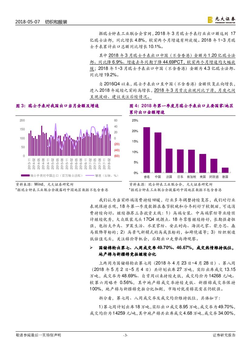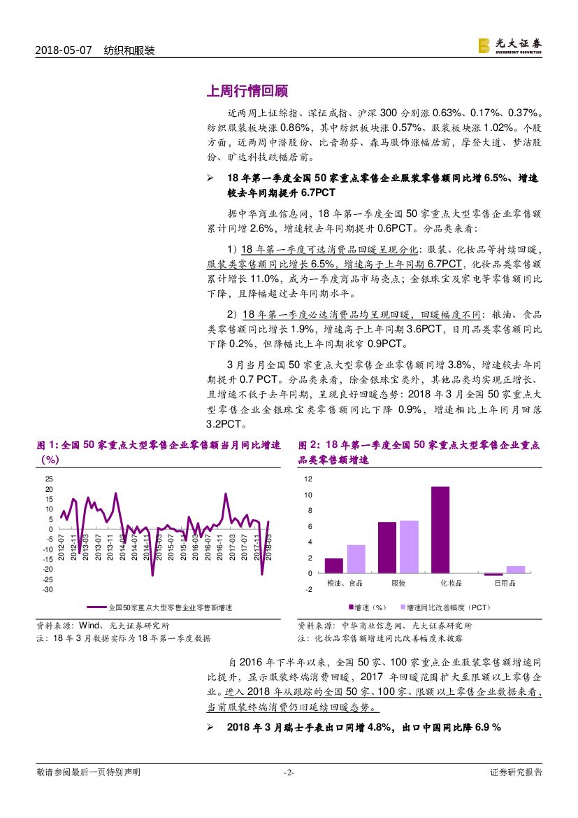光大证券:纺织服装行业周报:18Q1 50家服装零售额同增7%,3月瑞士钟表出口我国同降7%.pdf