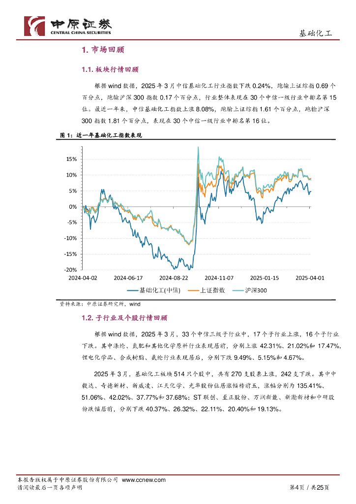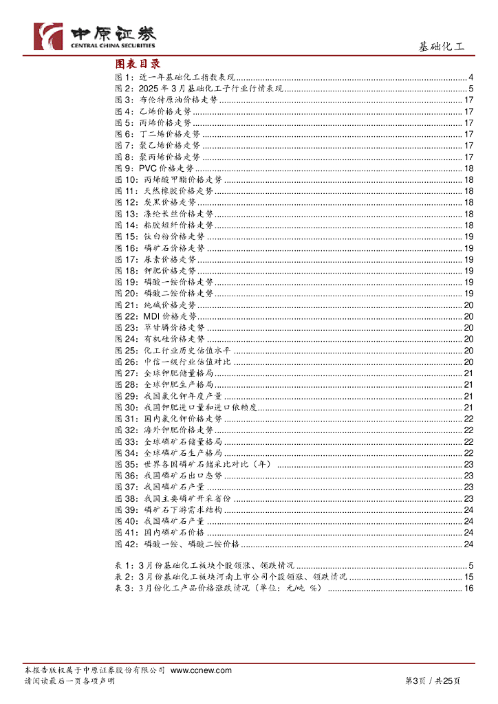 中原证券:基础化工行业月报:化工品价格延续回落,关注需求具有保障的钾肥和磷化工行业.pdf