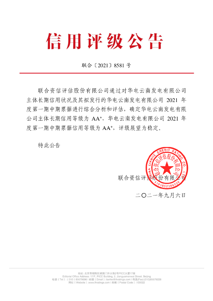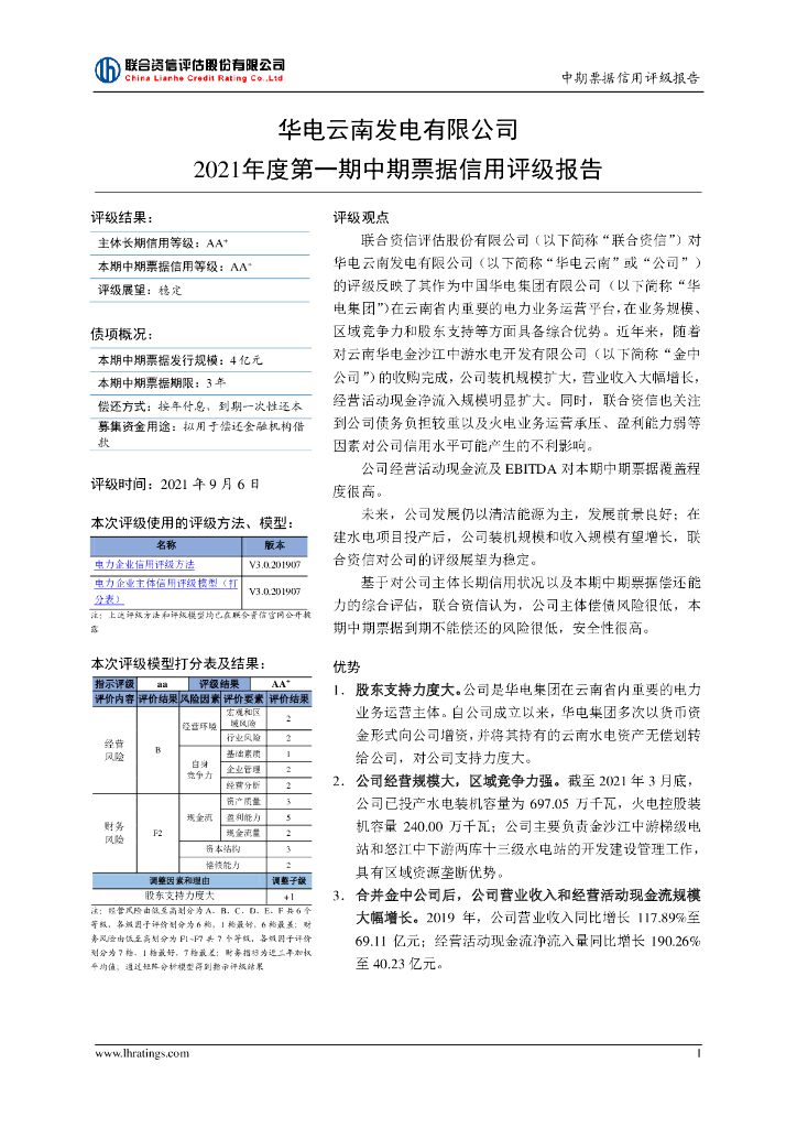 联合资信:华电云南发电有限公司主体信用评级报告及跟踪评级安排.pdf