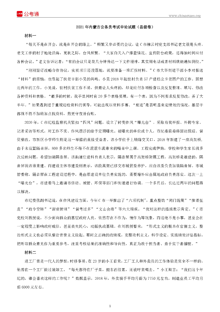 2021年内蒙古公务员考试申论试题(县级卷).pdf