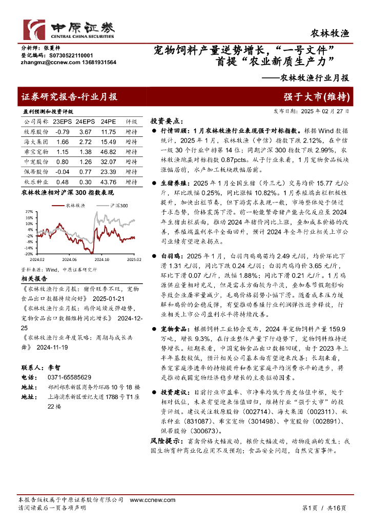 中原证券:农林牧渔行业月报:宠物饲料产量逆势增长,“一号文件”首提“农业新质生产力”.pdf