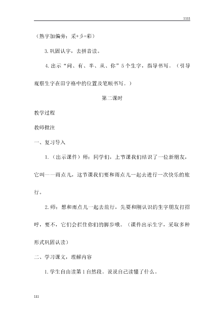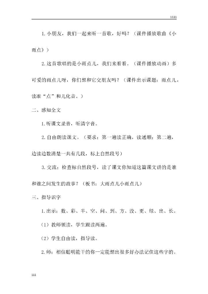 一年级语文(教案1)8 雨点儿教学设计.doc