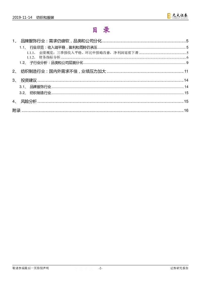 光大证券:纺织服装行业2019年三季报总结:需求未见改善,关注长期景气度和短期业绩稳健性.pdf