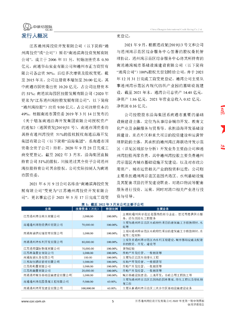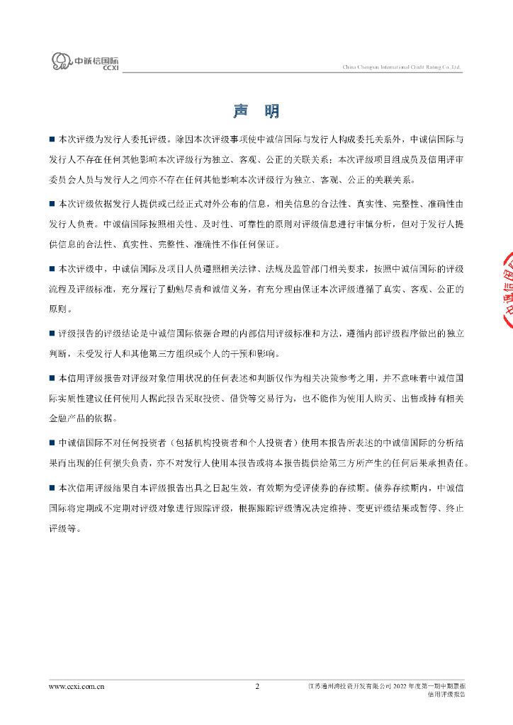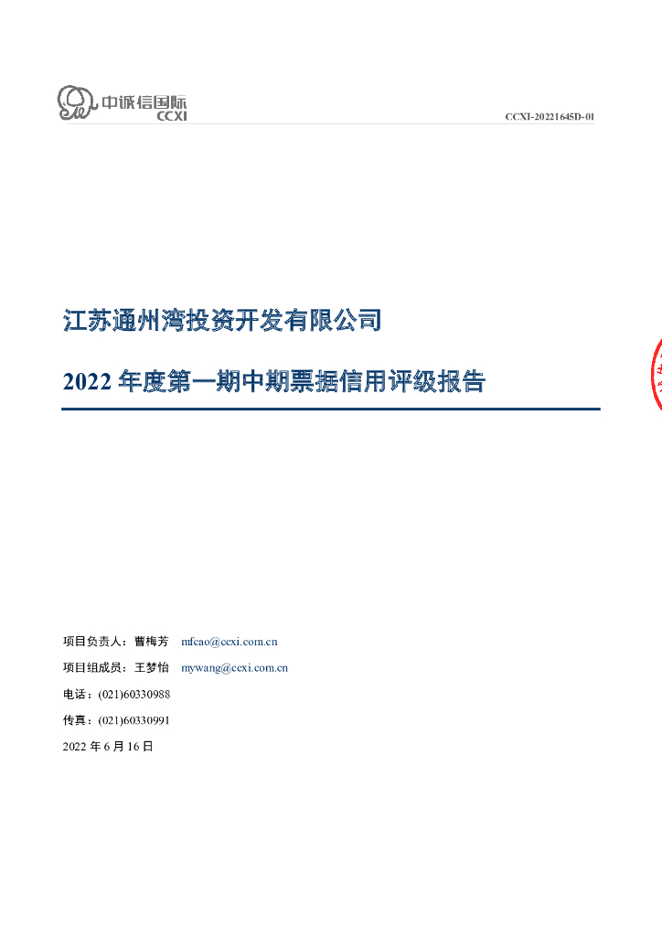 中诚信:江苏通州湾投资开发有限公司2022年度第一期中期票据信用评级报告及跟踪评级安排.pdf