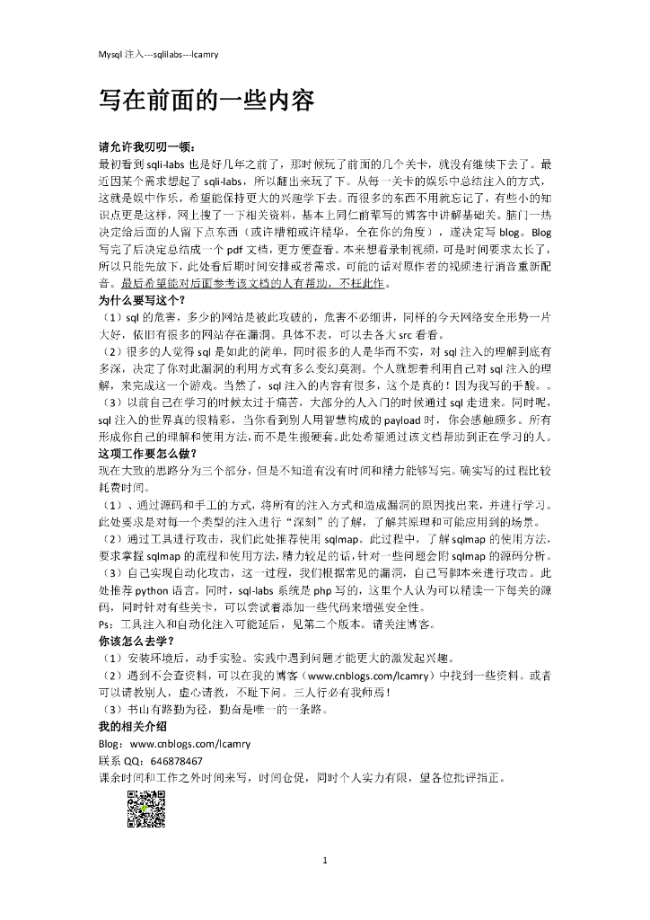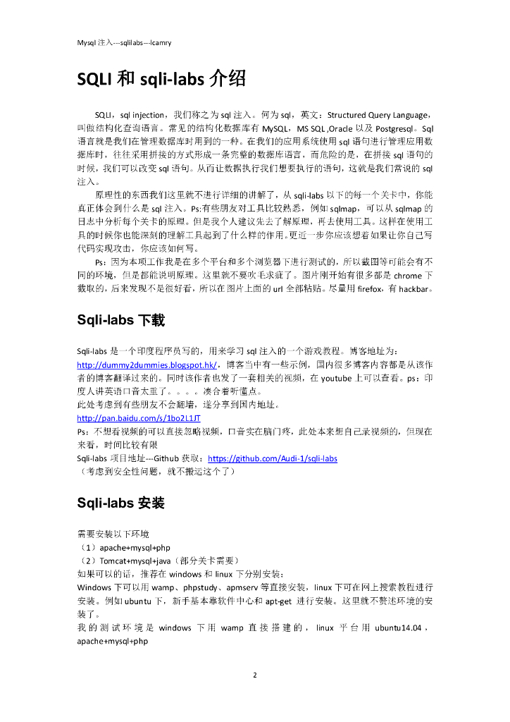 MYSQL 注入天书-- Sqli-labs 使用手册.pdf