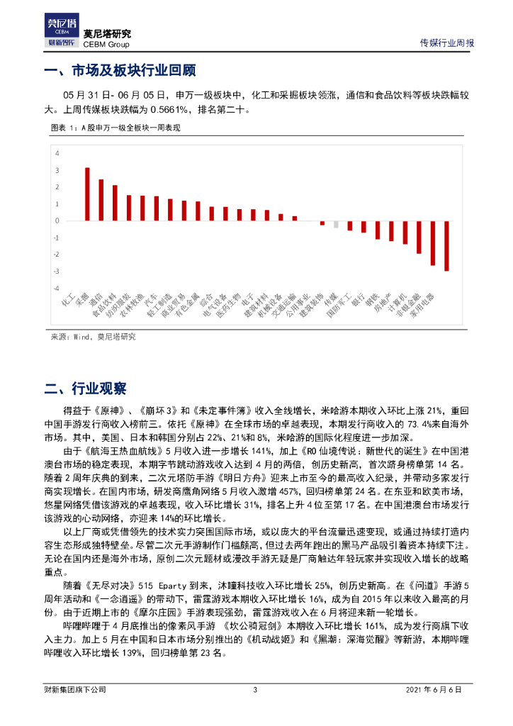 莫尼塔投资:传媒行业周报:中国手游发行商5月收入榜字节排名创新高.pdf