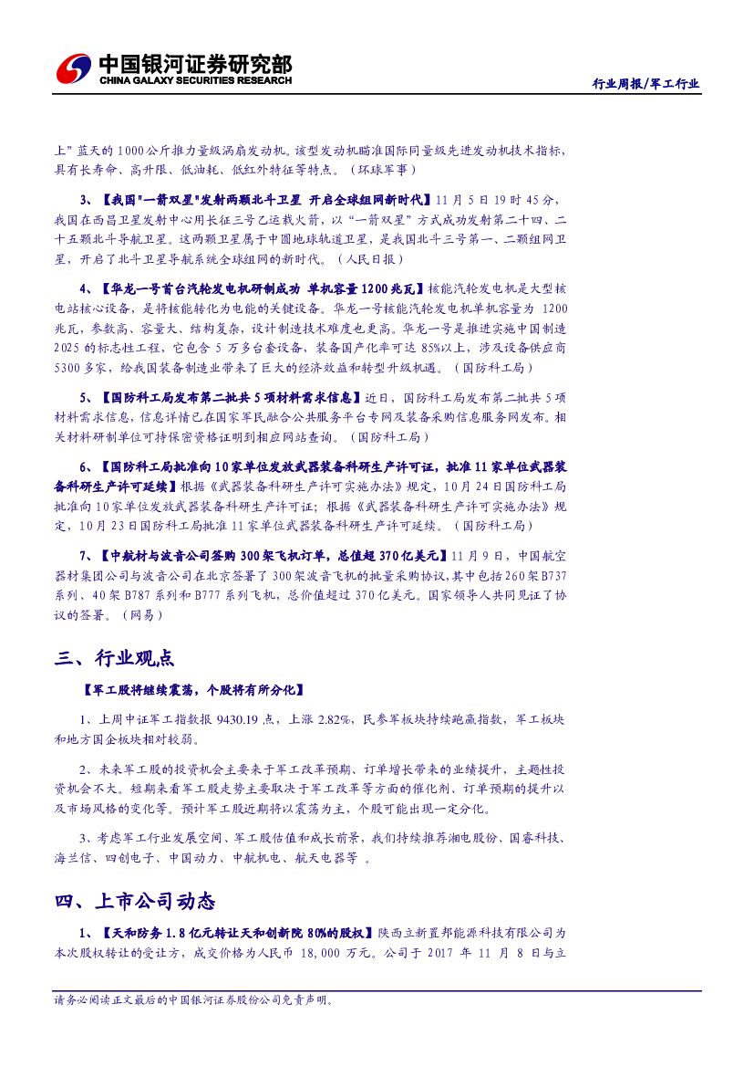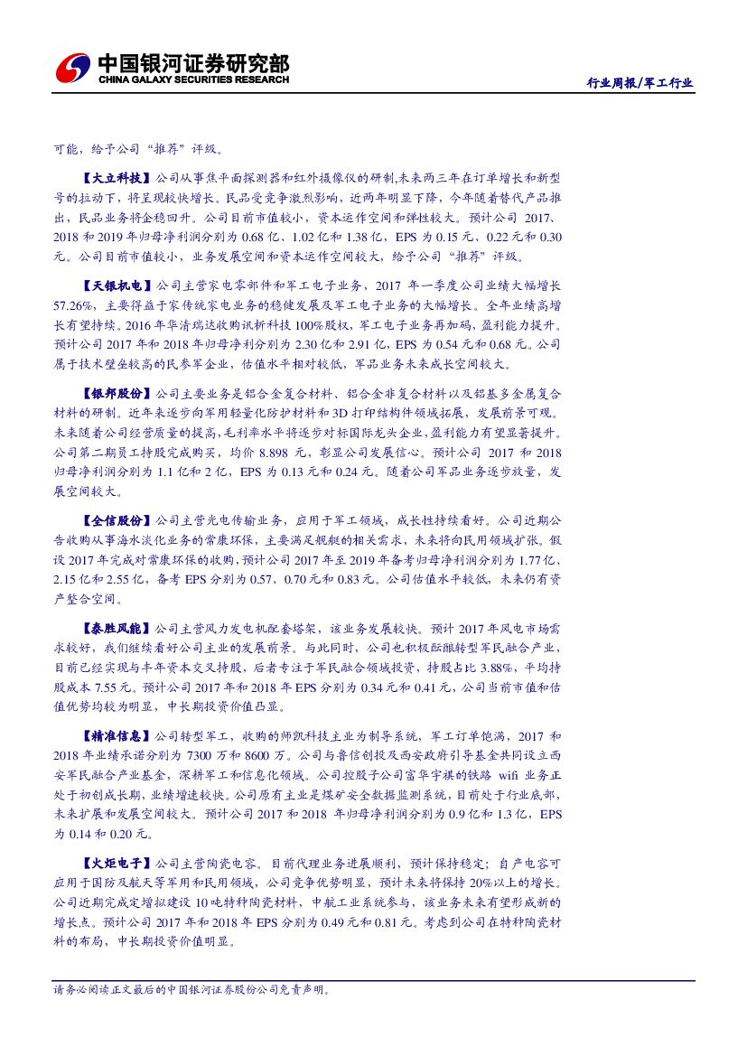中国银河:军工行业周报:军工股将继续震荡,个股将有所分化.pdf