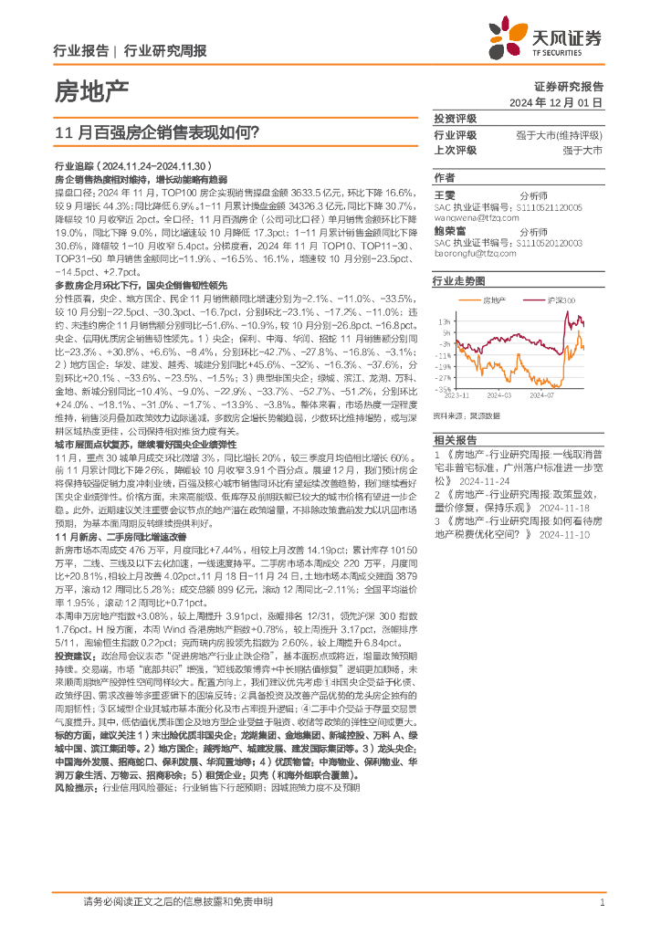 天风证券:房地产行业研究周报:11月百强房企销售表现如何?.pdf