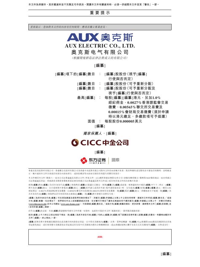 AUX奥克斯电气有限公司港交所科创板IPO上市招股说明书(2025年7月更新版).pdf