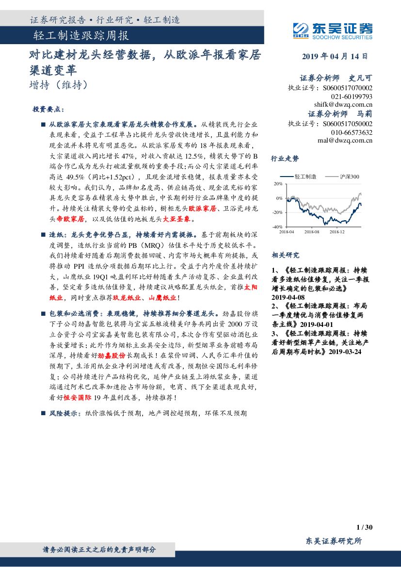 东吴证券:轻工制造跟踪周报:对比建材龙头经营数据,从欧派年报看家居渠道变革.pdf