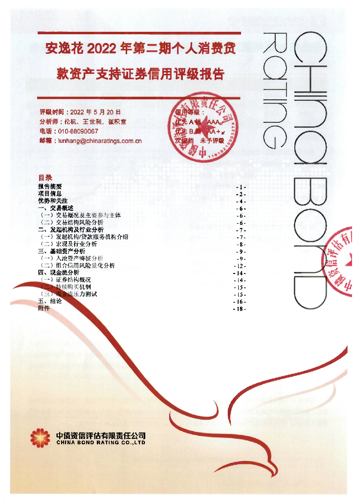 中债资信:安逸花2022年第二期个人消费贷款资产支持证券信用评级报告.pdf