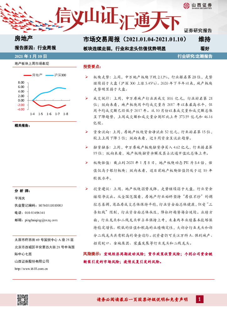 山西证券:房地产市场交易周报:板块连续走弱,行业和龙头估值优势明显.pdf