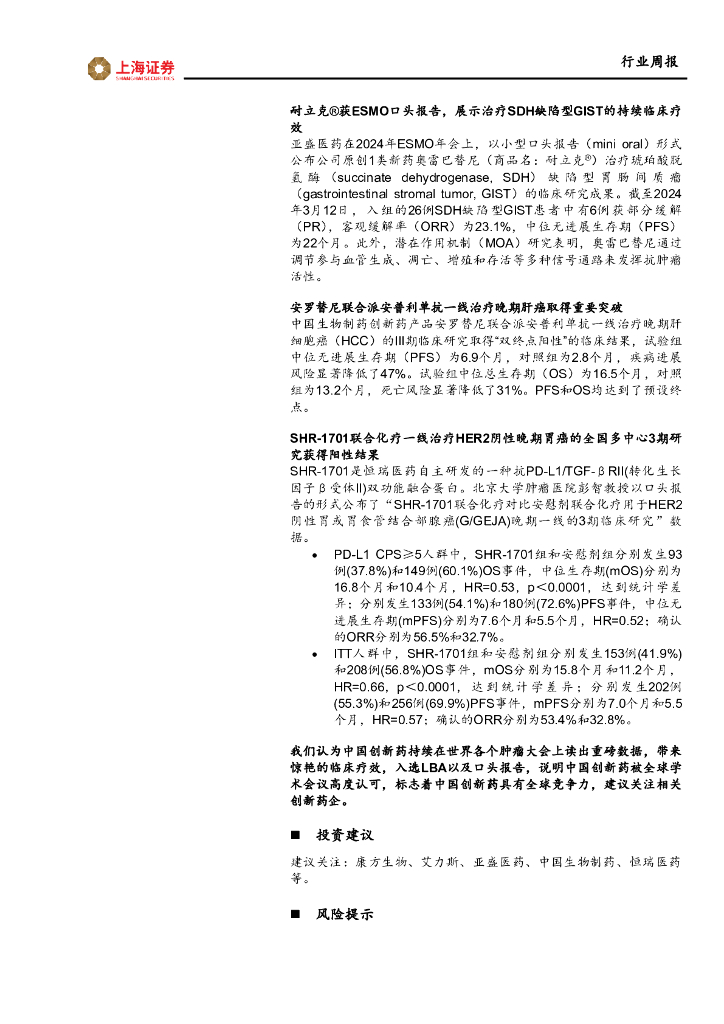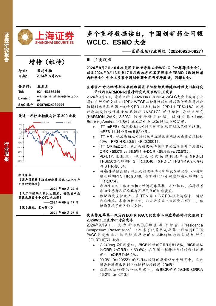 上海证券:医药生物行业周报:多个重磅数据读出,中国创新药企闪耀WCLC、ESMO大会.pdf
