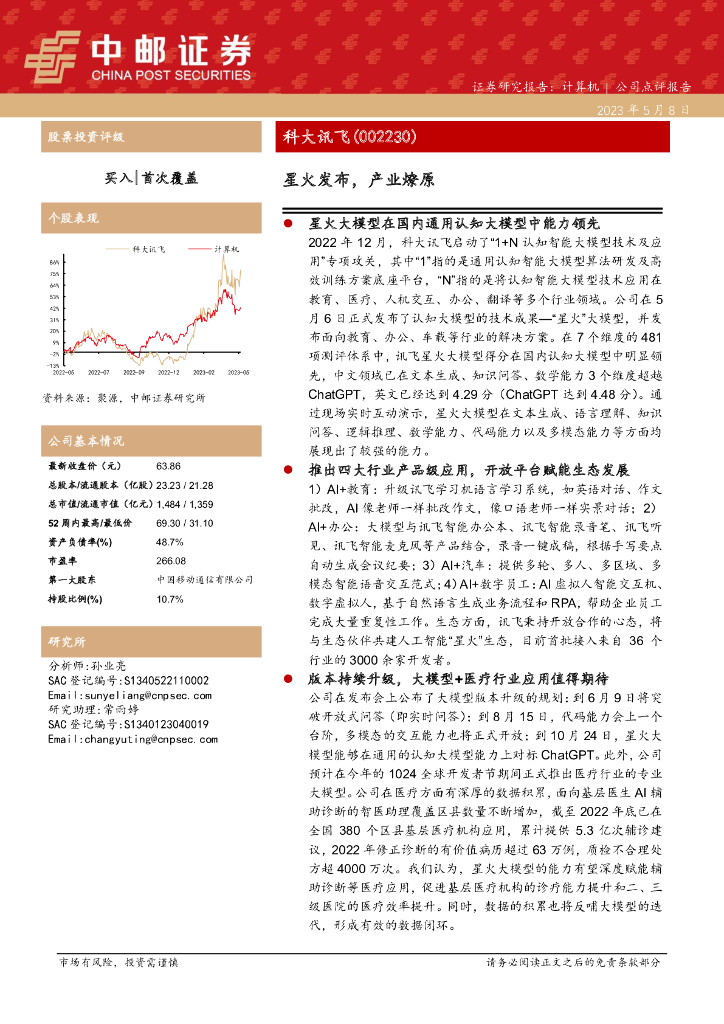 中邮证券:科大讯飞(002230)-星火发布,产业燎原.pdf