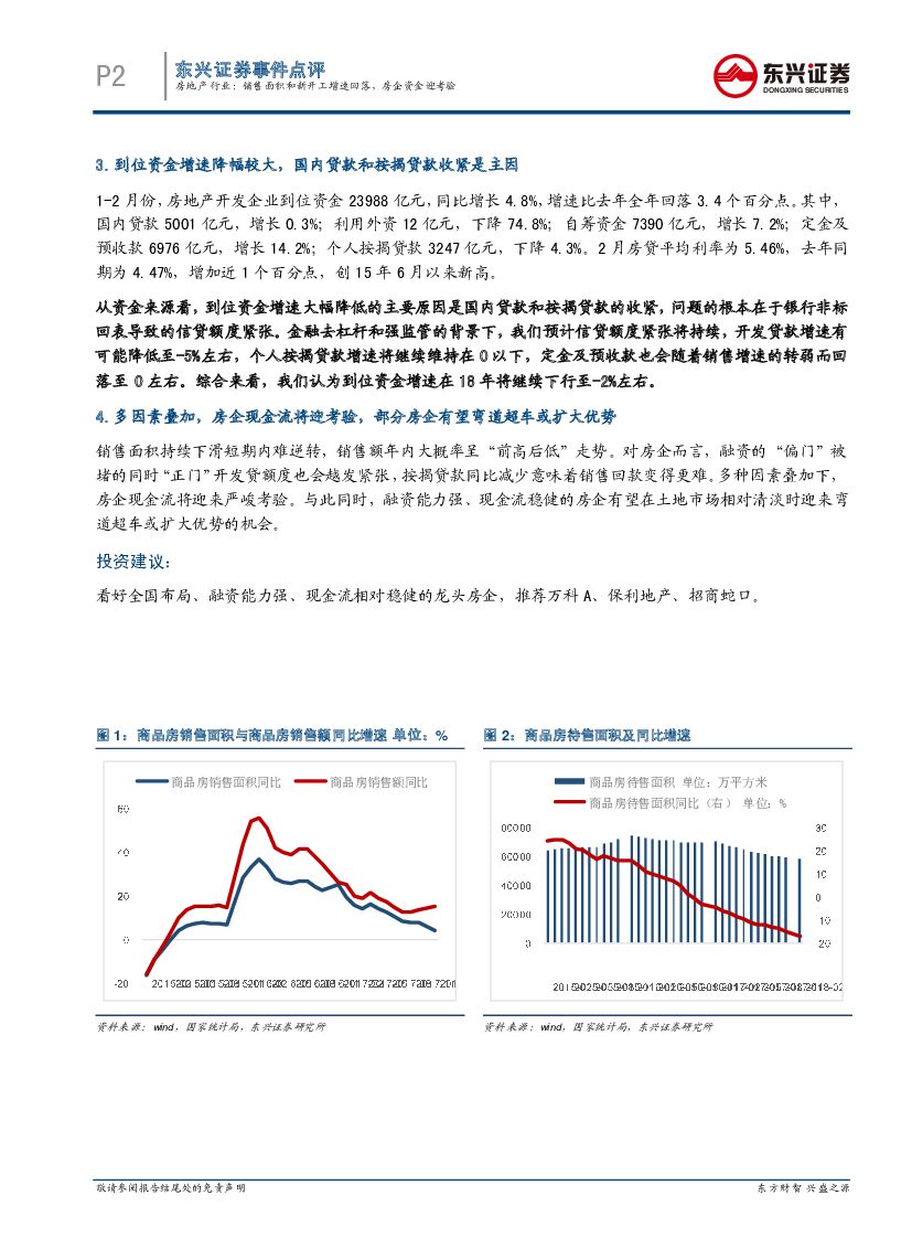 东兴证券:房地产行业事件点评:销售面积和新开工增速回落,房企资金迎考验.pdf